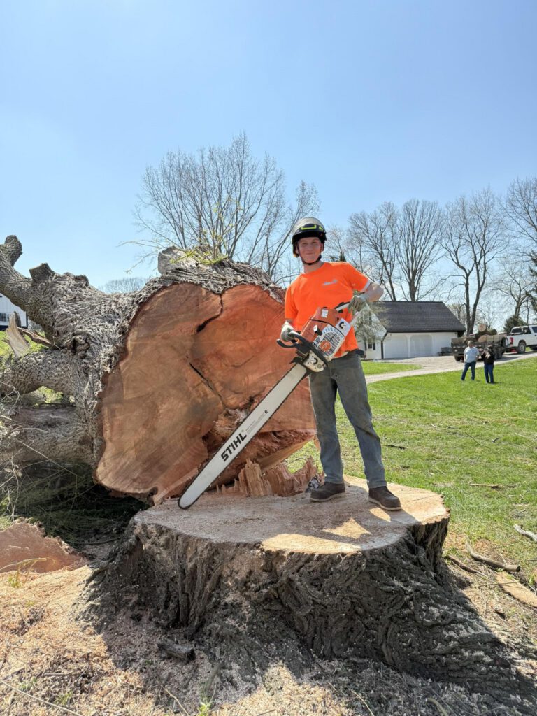 How did I get here? The story is that my grandfather was an arborist, and when I was young, he started showing me the ropes, leading to my doing this for a living now that I'm older. As I love being outside, helping people, and working hard, it's the perfect job for me.